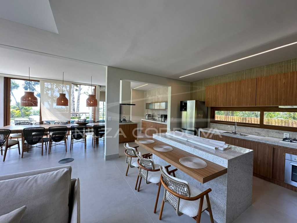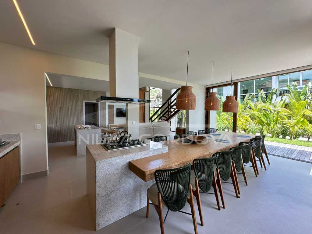 6 suítes ; 8 banheiros ; Segurança ; Piscina ; Estacionamento ; Área de Serviço ; Área Gourmet ; Cozinha ; Jardim ; Portão Eletrônico ; Sala de Estar ; Sala de Jantar ; Varanda ; Ar Condicionado ; Sala de TV ; Dois Pisos ; Mobília.